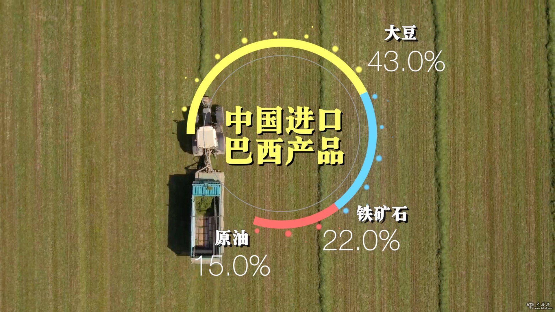 在向中国出口的巴西产品中,43%为大豆,22%为铁矿石,15%为原油。