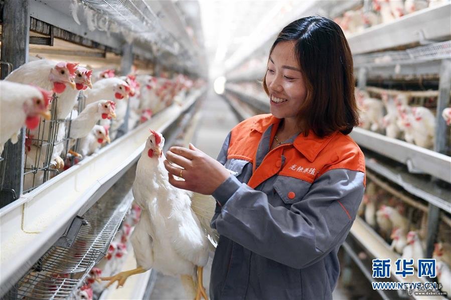 云南省镇雄县五德镇渡船坝社区农家女刘艳外出务工多年后返乡创业,带动乡亲们发展山地生态鸡和优质蛋鸡养殖增收脱贫。这是刘艳在养殖场查看优质蛋鸡(6月4日摄)。新华社记者 杨宗友 摄