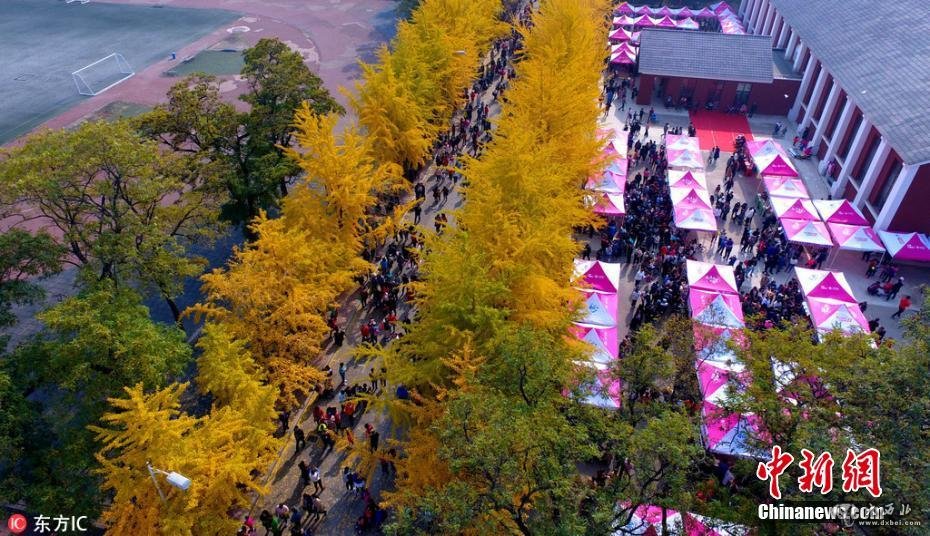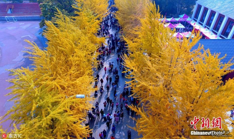 10月21日,辽宁沈阳,辽宁大学一年一度的银杏节开幕。校园内色彩斑斓犹如童话世界,吸引众多市民前来参观。张红 摄 图片来源:图片来源:东方IC 版权作品 请勿转载