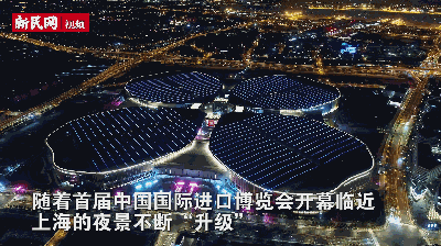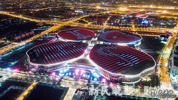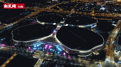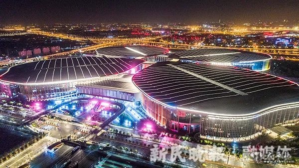 国家会展中心灯光测试航拍。新民晚报记者徐程摄