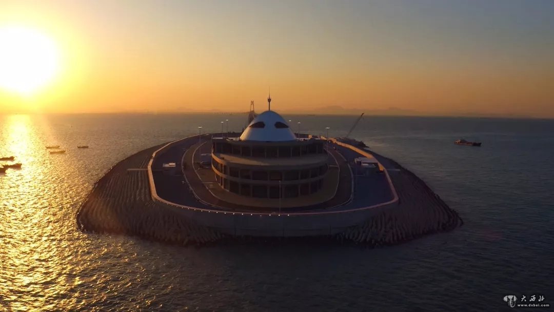 珠澳口岸人工岛是港珠澳大桥主体工程与珠海澳门两地的衔接中心,两地过关口岸都设置在岛上,实现“城市中转”。