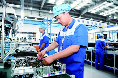 在全面深化改革的过程中,必须将钉钉子的精神和真抓实干的态度贯穿始终,推动高质量发展。图为员工在山东济南高新区的浪潮集团高端容错计算机生产基地组装服务器。新华社发