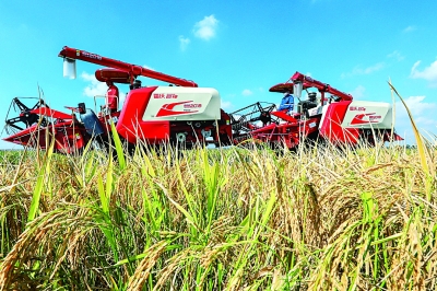 人民群众切实的获得感是改革成效的重要体现。图为农民在江苏省淮安市盱眙县黄花塘镇老营“虾稻共生”示范基地驾驶收割机收获水稻。新华社发