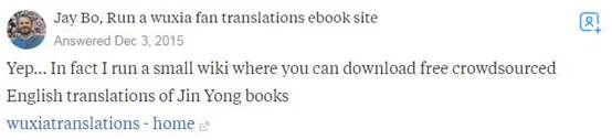 美国问答类网站“Quora”上关于金庸的问答截图