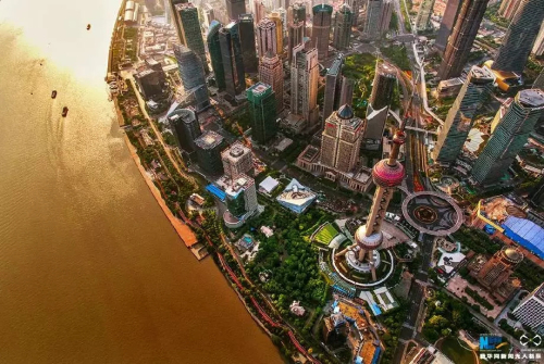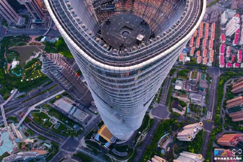 无人机“飞阅”上海中心。新华网发 王正坤 摄