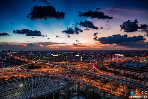 傍晚时刻的上海立交桥。新华网发 田横 摄