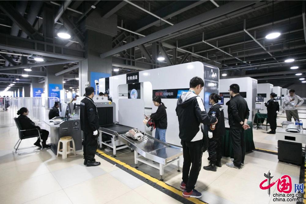 记者通过人体安检通道进入新闻中心。中国网记者董宁摄