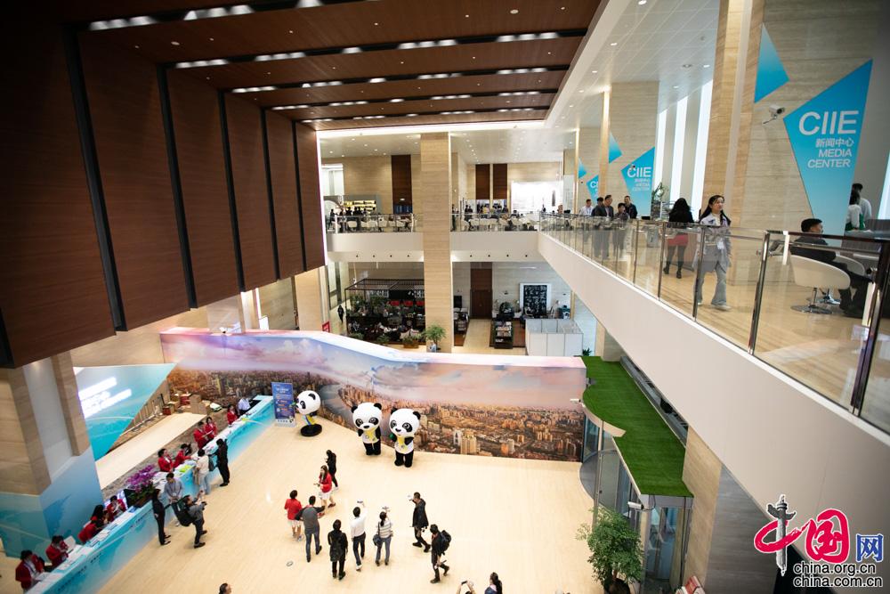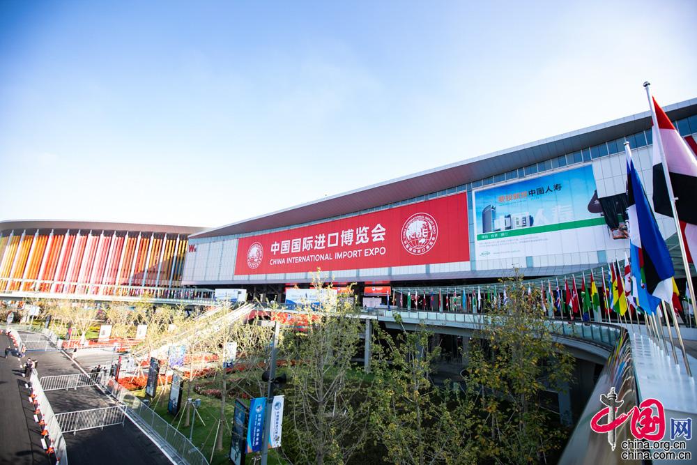 11月4日,首届中国国际进口博览会新闻中心正式投入运营。图为博览会会场外。中国网记者董宁摄