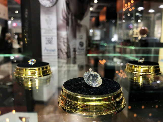 进口博览会上的钻石与宝石精品馆里,闪闪发光的首饰、装饰品吸引了许多观众前往观赏洽谈。快跟随小文的图集一起看看这些“bling bling”的精品吧!