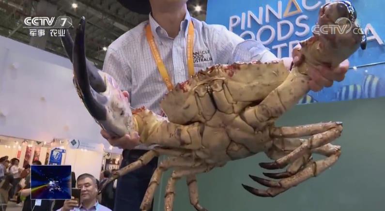 一家澳大利亚企业的展台前,来自澳大利亚的长寿海鲜吸引很多观众围观拍照。参展商工作人员介绍说,“澳大利亚皇帝蟹每一个大概有13斤,蟹钳可以把人的手指切断,这只皇帝蟹大概有40岁左右,另外一只大的大概有80岁了。另外就是澳大利亚的南池龙虾,大概八斤左右,年龄大概30--40岁了。这些海鲜从澳大利亚墨尔本运到上海,乘坐了10个小时的飞机,这么大的年龄,首次飞这么长的路到中国,它们这次也不容易。”