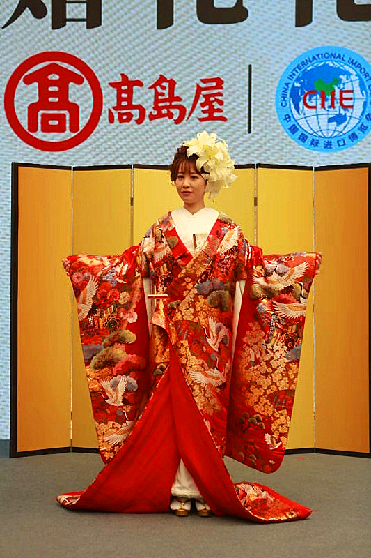 这恐怕是进口博览会上最养眼的秀场了,日本展商高岛屋今天在“四叶草”办“日本婚礼礼服秀”,展现“华丽指数”最高、最能代表日本传统工艺的服装。专程从日本赶来的婚礼化妆师现场演示了和服的穿着过程,台下看秀的上海阿姨举着手机狂拍,“哎呦漂亮漂亮,但穿起来也真作孽!”