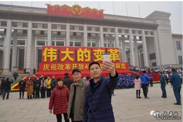 11月14日上午,中国国家博物馆外,正在自拍留念的观众。当日,“伟大的变革——庆祝改革开放40周年大型展览”正式对公众开放。