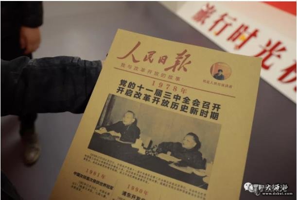 在第三展区“关键抉择——党中央推进改革开放的战略擘画”中听取讲解的观众。