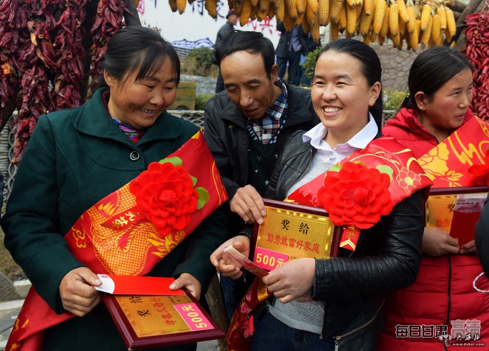 街坊四邻向“勤劳致富好家庭”奖获得者表示祝贺。