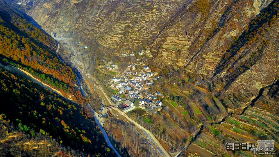 被群山环绕的宕昌县官亭镇付家村(航拍图)。