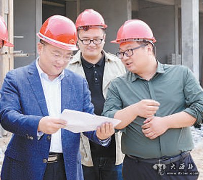 杨帆(左)带领班子成员走进项目施工现场,了解项目进度。