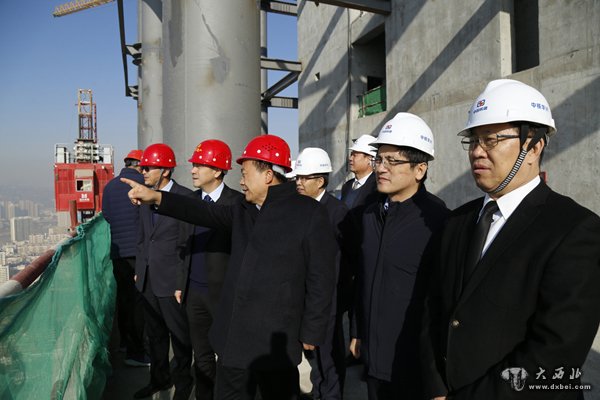 赵爱一行在盛达金融广场项目工地调研。 贾笑云 摄