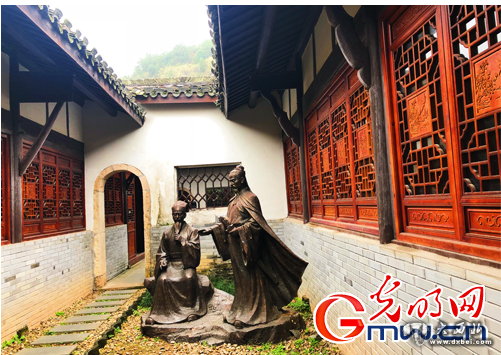 图为辛弃疾和陈亮“鹅湖之晤”的雕塑。(光明网记者郑芳芳/摄)