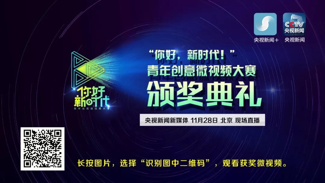 11月28日,由中宣部宣教局、中央网信办传播局、教育部思政司、共青团中央宣传部共同指导,中央广播电视总台央视新闻中心等单位主办的“你好,新时代!”青年创意微视频大赛颁奖典礼在京举行。