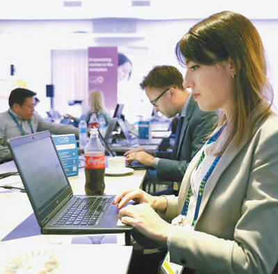 二十国集团布宜诺斯艾利斯峰会新闻中心内,各国记者在紧张工作。
