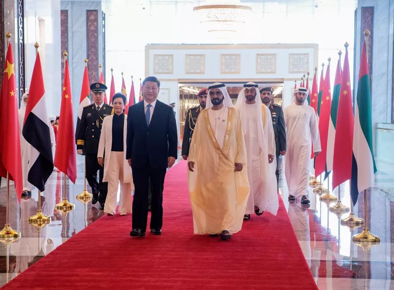 △7月19日,习近平乘专机抵达阿布扎比,开始对阿拉伯联合酋长国进行国事访问