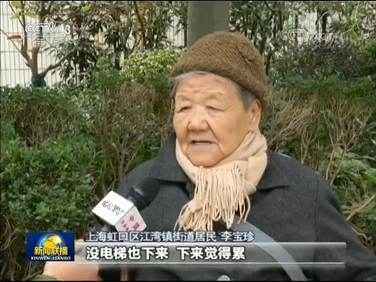 上海虹口区江湾镇街道居民 李宝珍:没电梯也下来,下来觉得累,现在有电梯了觉得方便多了,下来又跟人们说说话,老开心了。