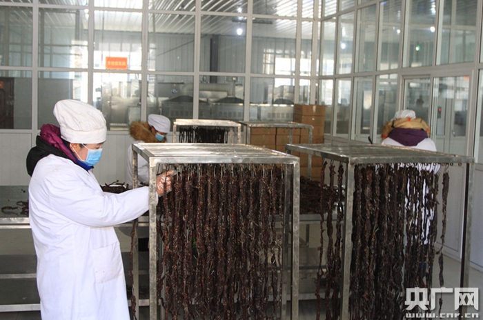 工人正在制作牦牛肉干(央广网记者 普布次仁 摄)