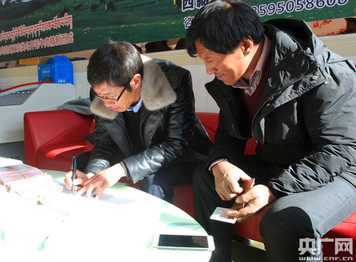 牧民正在领取出售牦牛的钱(央广网记者 普布次仁 摄)