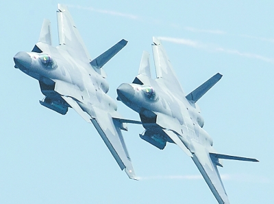 2018年11月11日,4架全新涂装的歼-20战机,在第十二届中国航展上以四机编队进行了约8分钟的飞行展示,将本届航展推向高潮,震撼献礼人民空军成立69周年纪念日,彰显人民空军的开放和自信。新华社发