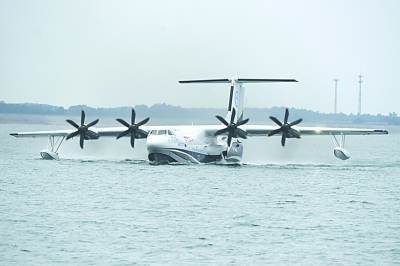 2018年10月20日,中国自主研制的大型水陆两栖飞机——“鲲龙”AG600在水上滑行。至此,中国大飞机终于迈出“上天入海”的完整步伐,建设航空强国轮廓愈发明晰。新华社记者 程敏摄
