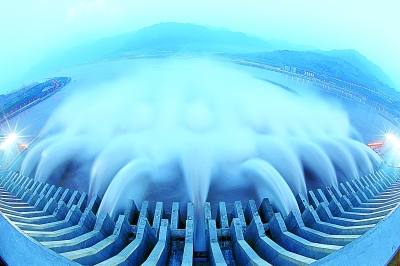 三峡水利枢纽工程将荆江河段防洪标准由十年一遇提高到百年一遇,使长江中下游防洪能力显著提高。截至2017年,累计拦洪运用44次,共拦蓄洪水1322亿立方米,有力保障了长江安澜。图为三峡大坝泄洪壮观景象。