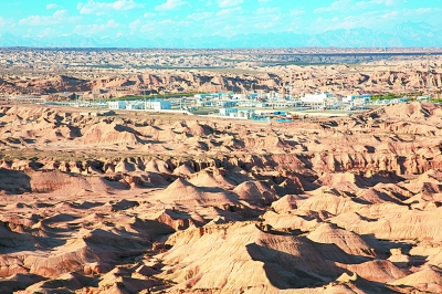 塔里木盆地是中国最大的含油气沉积盆地,已探明油气资源总量约160亿吨油当量,其中天然气资源量8万多亿立方米,占全国已探明天然气资源总量的22%。图为新疆塔里木油田克拉2气田。