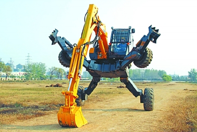 中国工程机械行业产品体系完备、品牌效应明显、技术水平领先。图为中国研发的ET110步履式挖掘机,可远距离操作,高原、平地通用,被称为“钢铁蜘蛛侠”。