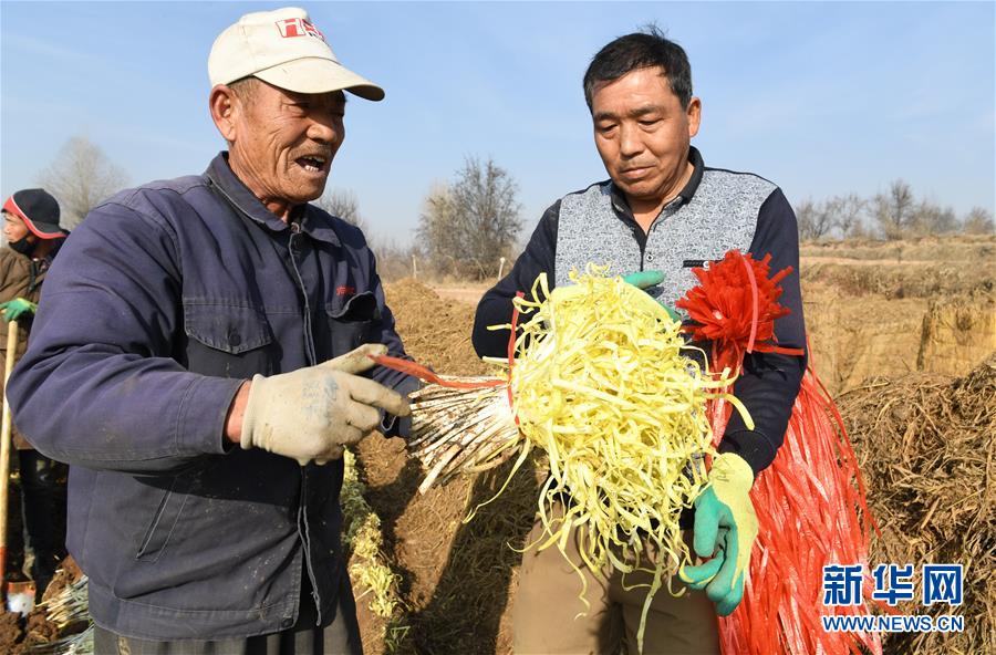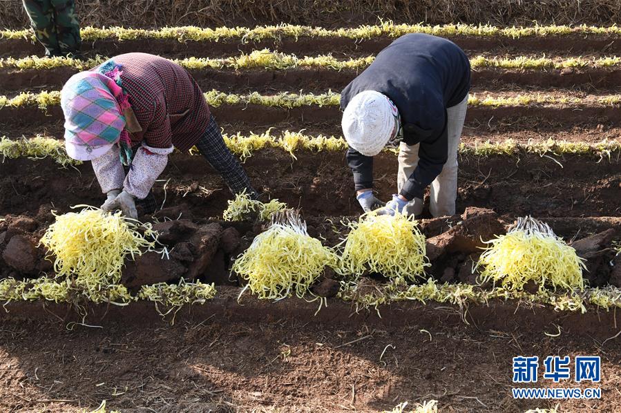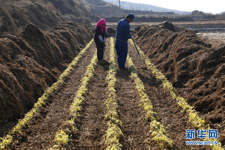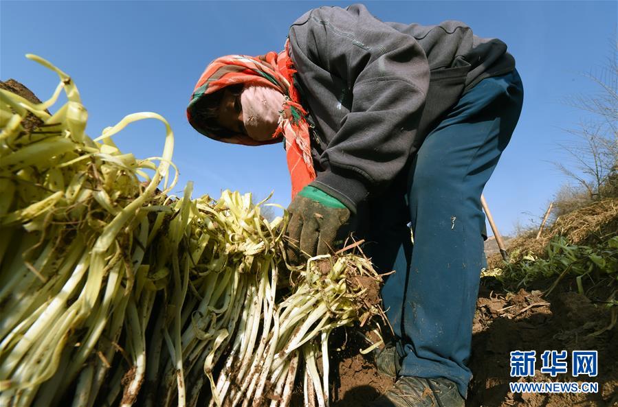 12月19日,在兰州市西固区西柳沟街道张家大坪村,农民在整理收获的韭黄。