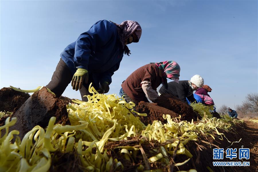 临近冬至,甘肃省兰州市西固区西柳沟街道张家大坪村种植的500多亩韭黄喜获丰收,农民们在田间忙得热火朝天。新华社记者范培珅摄