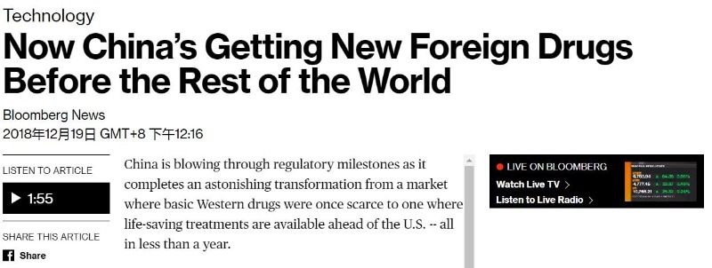 外媒认为,从基本西药一度短缺,到外资药企创新药率先在华上市,这一惊人转变是中国药品监管不断改革的新里程碑。