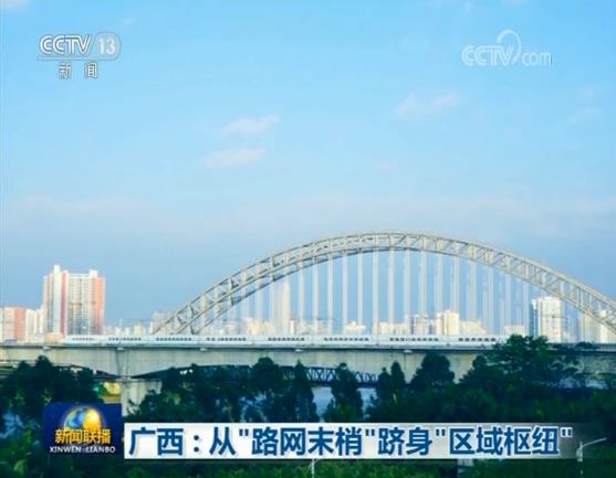 央视网消息(新闻联播):广西作为面向东盟开放的“桥头堡”,五年来高铁从无到有,营运里程已经超过1700公里,位居全国前列,广西正在从全国的“路网末梢”跻身为“区域枢纽”。