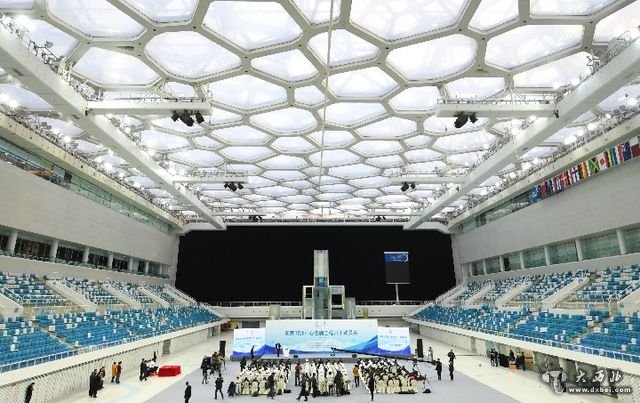 12月26日,国家游泳中心冬奥工程开工动员会在国家游泳中心“水立方”举行,“水立方”正式开始改造。改造后的国家游泳中心将在比赛大厅新增冰壶场地功能,满足北京2022年冬奥会和冬残奥会赛事需要;同时在南广场新增地下冰场,服务于群众冰上健身和普及冰壶运动。图为动员会现场(摄于12月26日)——新华社记者张晨霖摄