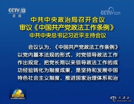 会议认为,《中国共产党政法工作条例》以党内基本法规的形式,对党领导政法工作作出规定,把党长期以来领导政法工作的成功经验转化为制度成果,是坚持和发展中国特色社会主义制度、推进国家治理体系和治理能力现代化的必然要求,是实现依法治国与依规治党有机统一的重要举措。