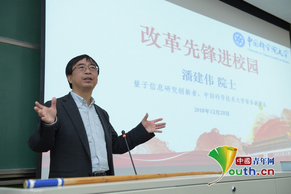 12月28日,潘建伟院士在成立于1978年、与改革开放同频共振的中国科学院大学做了一场精彩的报告,第一教学楼101报告厅人山人海,过道和门口都挤满了学生,另外开辟的直播教室也座无虚席。
