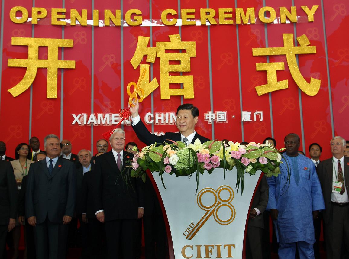2010年9月8日,第十四届中国国际投资贸易洽谈会在厦门正式开幕,习近平出席开馆式并为展馆开馆。新华社记者兰红光摄
