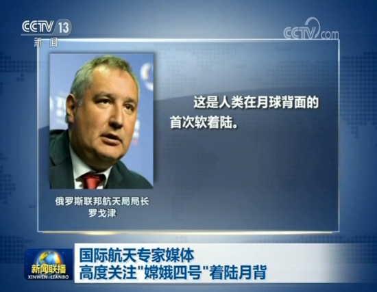 俄罗斯联邦航天局局长罗戈津表达了祝贺,并强调,这是人类在月球背面的首次软着陆。