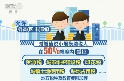 三是允许各省(区、市)政府对增值税小规模纳税人,在50%幅度内减征资源税、城市维护建设税、印花税、城镇土地使用税、耕地占用税等地方税种及教育费附加等。