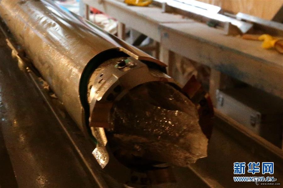 这是钻取的2.8米长冰芯(1月12日摄)。 新华社记者 刘诗平 摄