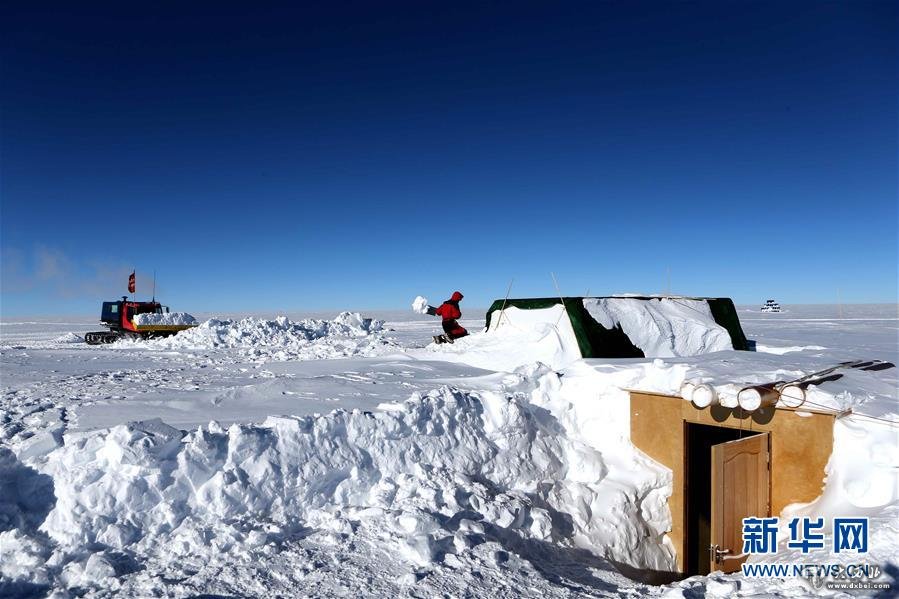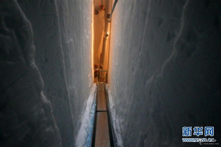 从昆仑站主体建筑朝东南方向走两三百米,便到了位于雪面以下3米深的深冰芯房。由于第34次南极科考队没来昆仑站,经过两年的风雪堆积,深冰芯房的各个出入口已完全被积雪掩埋。