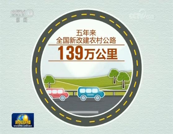 五年来,全国新改建农村公路139万公里,农村公路总里程达405万公里,通硬化路乡镇和建制村分别达到99.64%和99.47%,建制村通客车率达到96.5%,初步形成了以县城为中心、乡镇为节点、建制村为网点,遍布农村、连接城乡的农村公路交通网络。