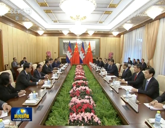习近平强调,中方支持柬埔寨走符合本国国情的发展道路,相信在首相先生领导下,柬埔寨一定会在国家建设事业方面取得新的更大成就。中柬要在现有基础上,重点加强政治、经济、安全、人文四大领域合作。要保持高层往来,加强治国理政经验交流,扩大两国政府、立法机构、政党、地方交往,深化在联合国、中国―东盟、澜湄合作等机制内的沟通协作。要加快“一带一路”倡议同柬埔寨发展战略对接,推进交通、产能、能源、贸易、民生等五大版块合作。要加强文化、旅游、文化遗产保护和修复、青年等交流合作,深化执法安全合作。