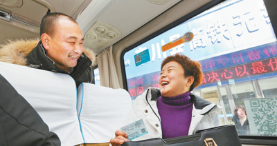 常爱卫(左)、伊晓丽乘上专线大巴。