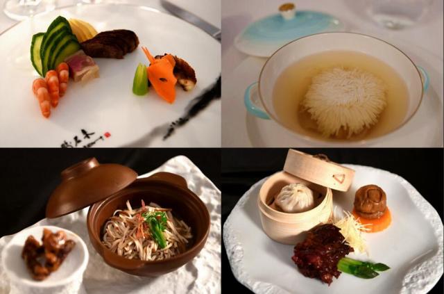 这是2019年1月25日在西班牙马德里一家酒店拍摄的“行走的年夜饭”中餐菜肴(拼版照片)。新华社记者郭求达摄