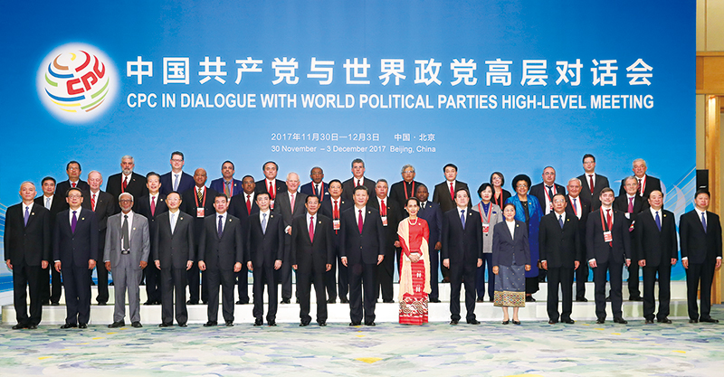 2017年12月1日,中共中央总书记、国家主席习近平在北京人民大会堂出席中国共产党与世界政党高层对话会开幕式,并发表题为《携手建设更加美好的世界》的主旨讲话。这是开幕式前,习近平与外方主要嘉宾合影留念。 新华社记者 丁林/摄